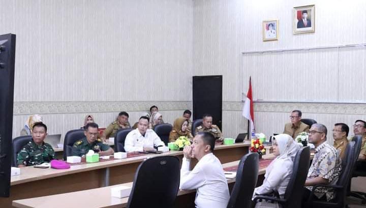 Sekretaris Daerah Provinsi Lampung Fahrizal Darminto mengikuti Rapat Koordinasi Pengendalian Inflasi Daerah secara virtual yang dipimpin oleh Inspektur Jenderal Kementerian Dalam Negeri, Tomsi Tohir, di Ruang Command Center lt.II Dinas Kominfotik Provinsi Lampung, Senin (26/02/2024).