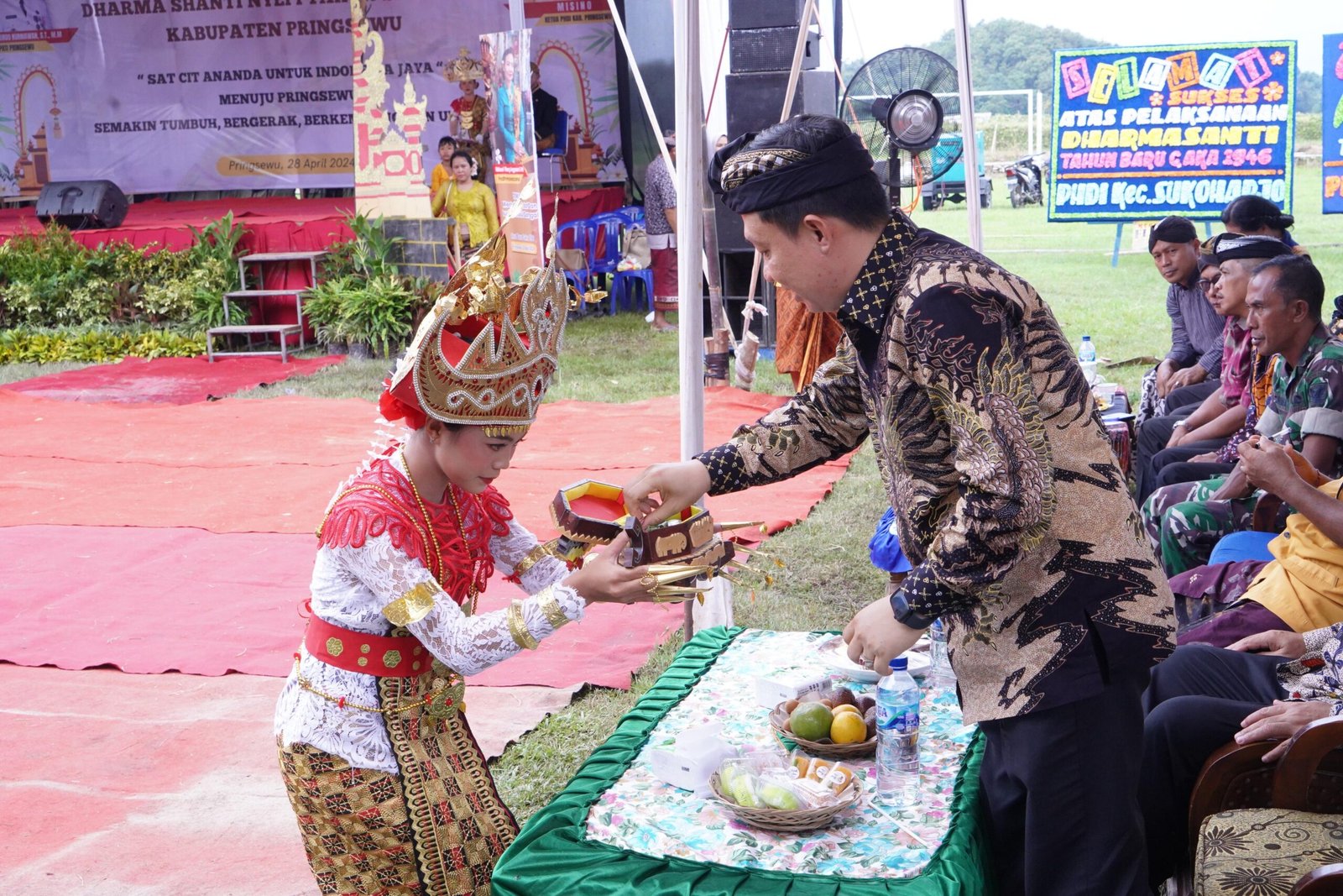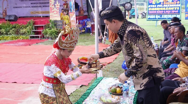 Parisada Hindu Dharma Indonesia (PHDI) Kabupaten Pringsewu, menggelar Dharmasanti Hari Raya Nyepi di Pekon Margodadi, Kecamatan Ambarawa, Minggu (28/4/2024).