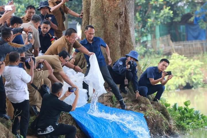 Adapun benih ikan yang ditebar sebanyak total 70.000 benih ikan, yang terdiri dari masing-masing 20.000 ekor benih ikan jelabat dan 50.000 ekor benih ikan baung.