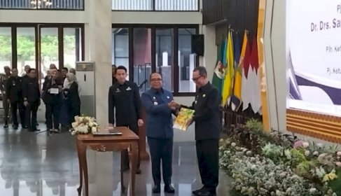 Staf Ahli Kementrian Pemuda dan Olahraga (Kemenpora) Samsudin resmi menerima jabatan Penjabat (Pj) Gubernur Lampung dari Pelaksana Harian (Plh) Fahrizal Darminto.