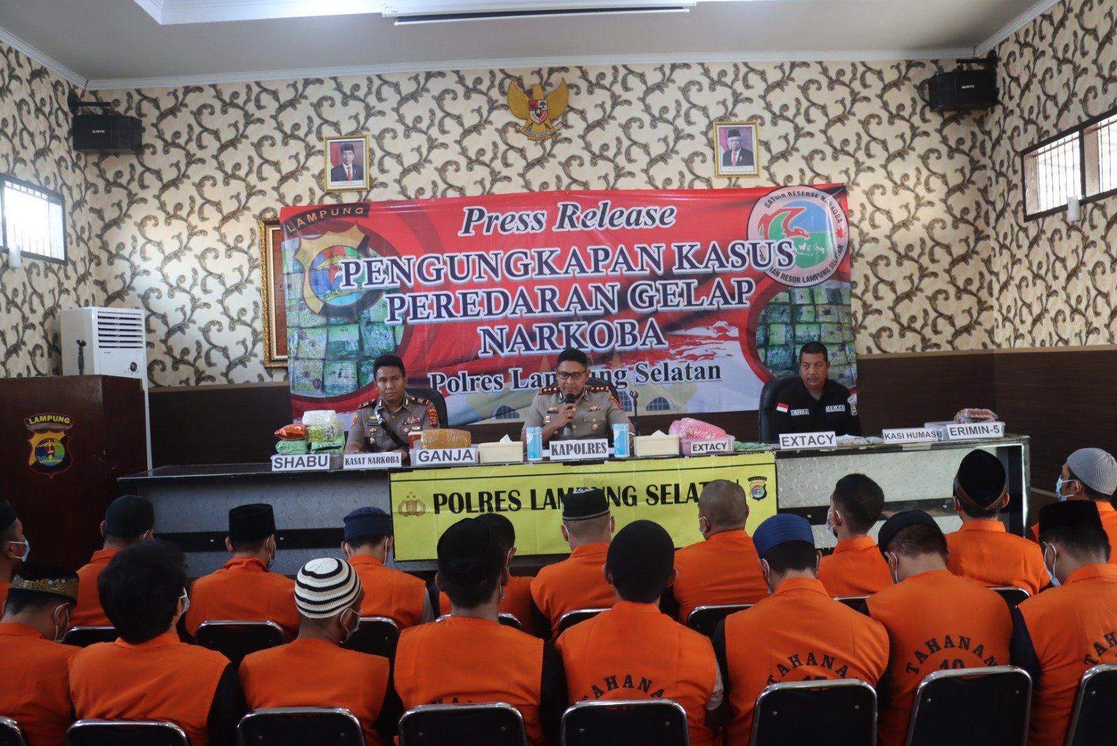 Hal itu, diungkapkan Kapolres Lamsel AKBP Yusriandi Yusrin saat konferensi pers ungkap kasus narkotika jenis sabu, ganja, ektasi dan operasi antik Krakatau 2024, di lapangan apel Mapolres setempat, Jumat (28/6/2024).