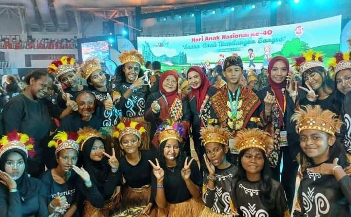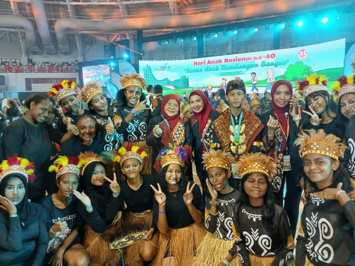 Pj. Ketua Tim Penggerak PKK Provinsi Lampung Maidawati Retnoningsih menghadiri acara puncak Peringatan Hari Anak Nasional (HAN) 2024 di Istora Papua Bangkit, Kota Jayapura, Provinsi Papua pada Selasa (23/7/2024).