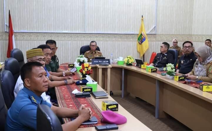 Sekdaprov Fahrizal Darminto mengikuti Rapat Koordinasi Pengendalian Inflasi Daerah secara daring, di Ruang Command Center Lt. II Dinas Kominfotik Provinsi Lampung, Senin (12/8/2024).