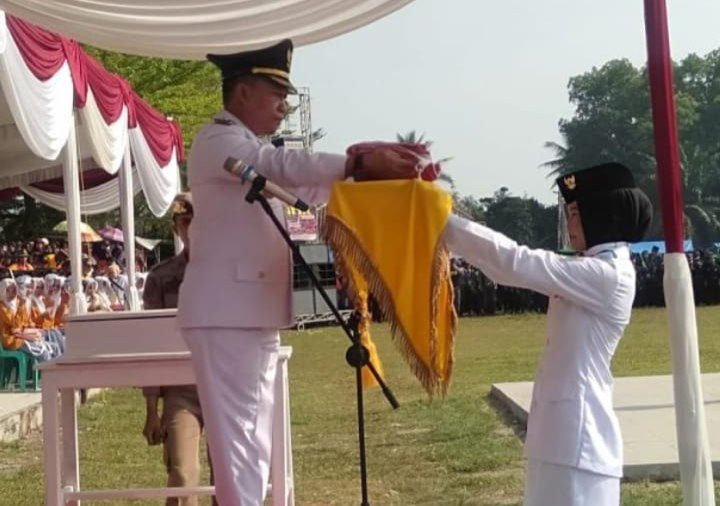 Untuk petugas pembentang bendera merah putih oleh Ismail Tri Adhani putra Bapak Bobaji, penerima bendera merah putih oleh Novita Fitri Anisa Putri Bapak Sunaryo, pengerek bendera merah putih oleh Aknan Fahri Husein putra Ibu Wariyanti.