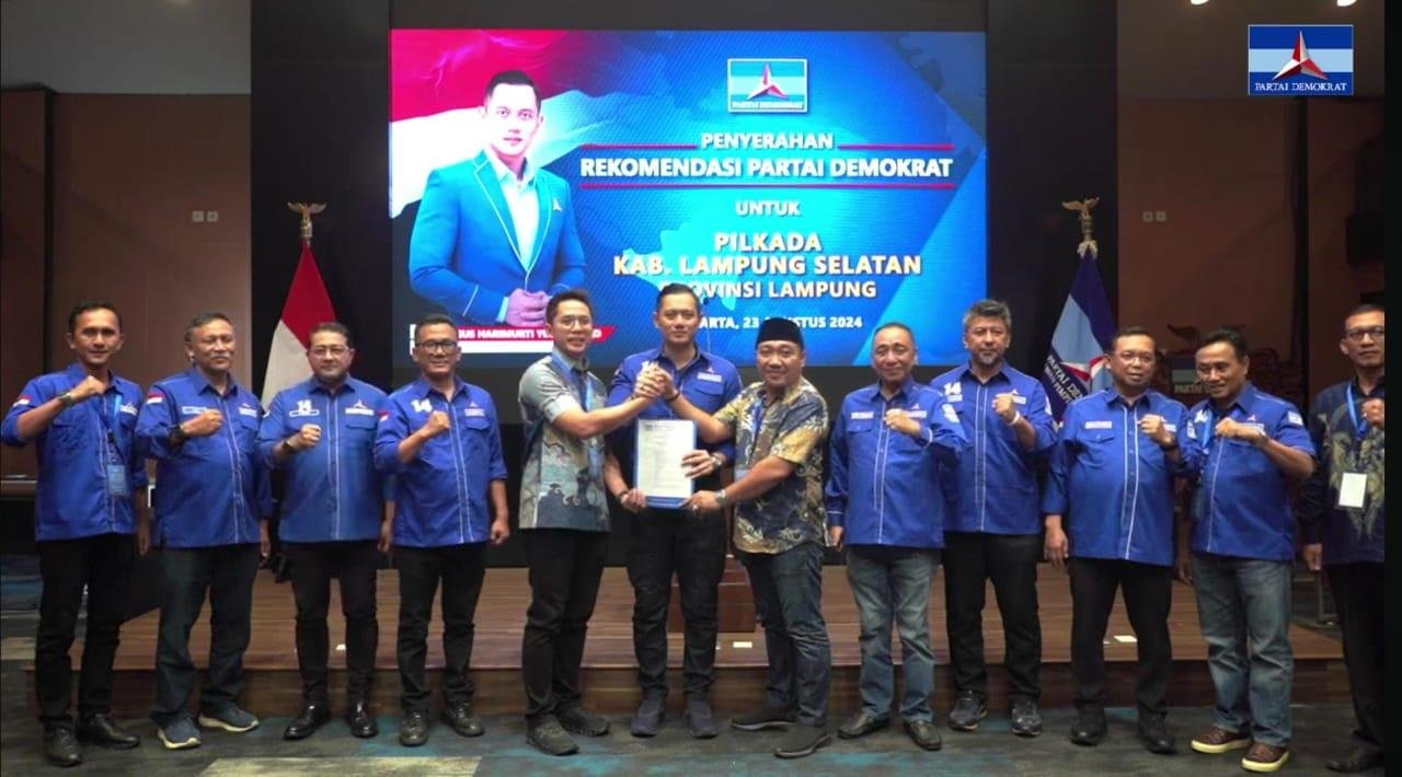 Partai Demokrat akhirnya memberikan dukungan dan rekomendasi kepada Radityo Egi Pratama – Syaiful Anwar sebagai Pasangan calon bupati dan wakil bupati Lampung Selatan (Lamsel). Surat rekomendasi diserahkan langsung oleh Ketum Partai Demokrat di Kantor DPP Partai Demokrat di Jakarta, Jumat (23/8).