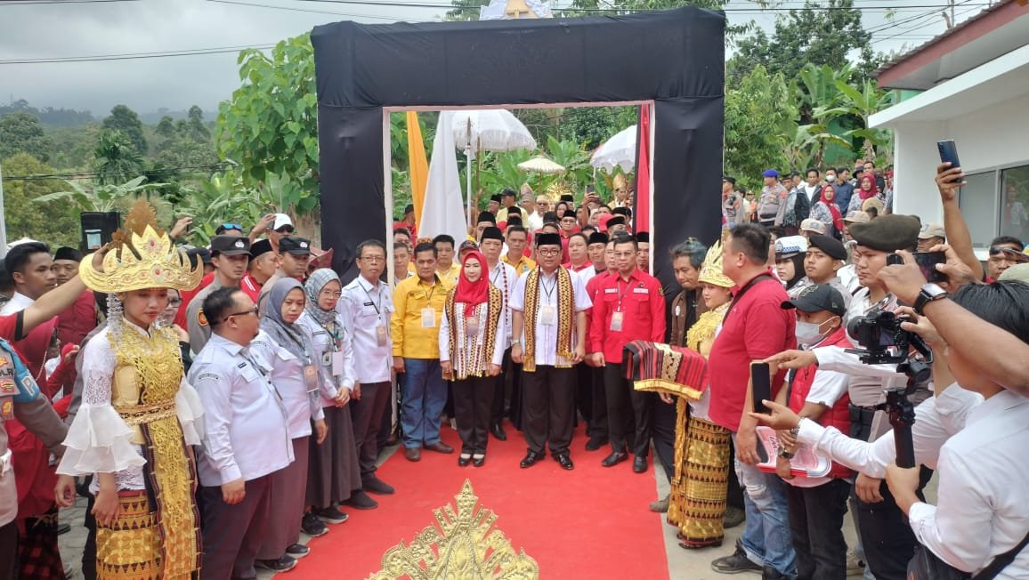 Rombongan paslon dengan mengusung tema “DAMAR” (Dewi Handajani dan Ammar Sirajuddin) tiba di gedung KPU disambut meriah dengan pencak silat lampung dan tarian daerah yang diiringi tabuan musik tradisional sehingga nuansa budaya daerah nampak terasa.