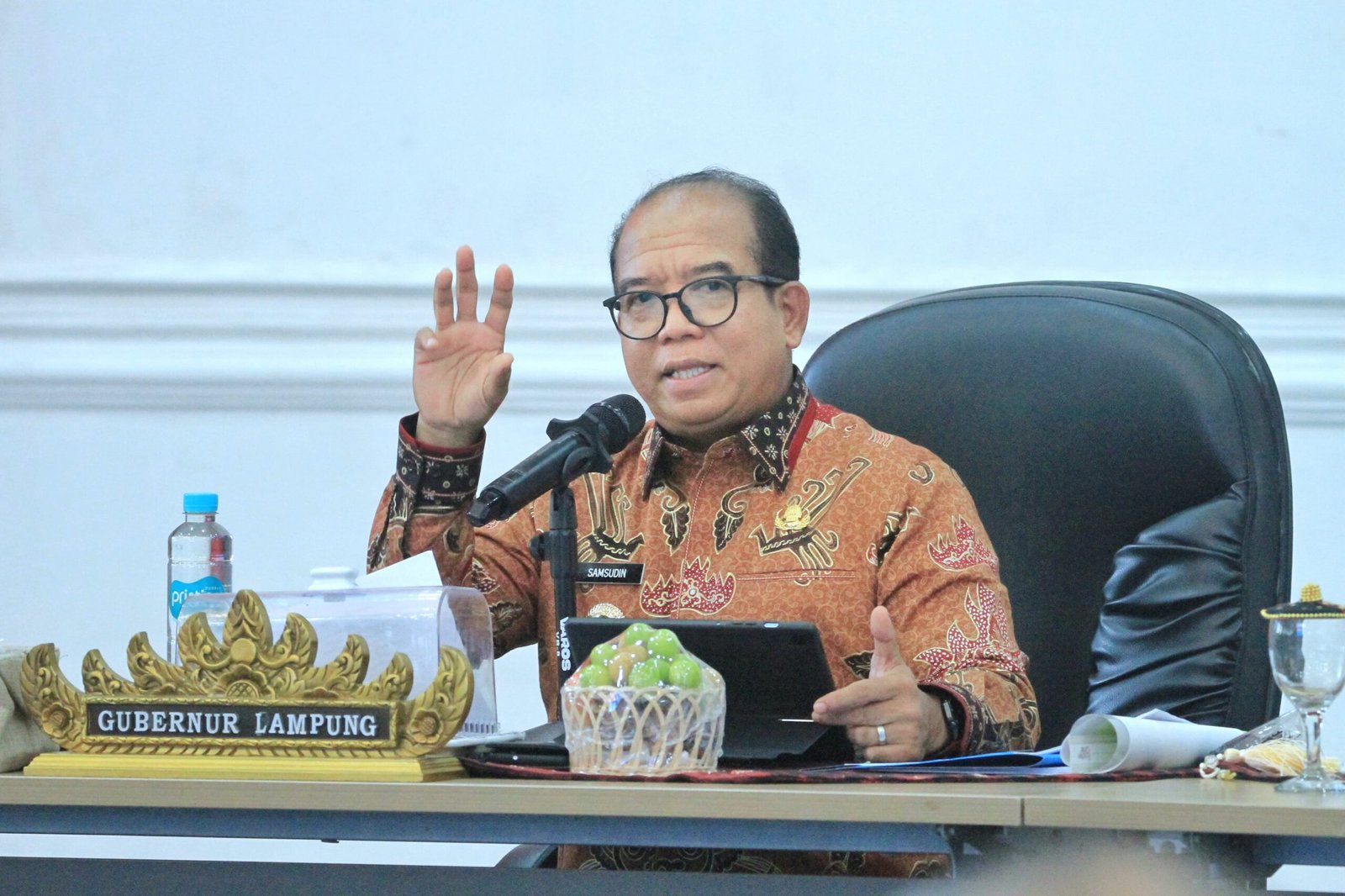 Penjabat Gubernur Lampung Samsudin membuka Rapat Pembahasan Percepatan Pengembangan Industri Gim Nasional di Aula Mahan Agung, Rumah Dinas Gubernur Lampung, Kamis (10/10/2024).