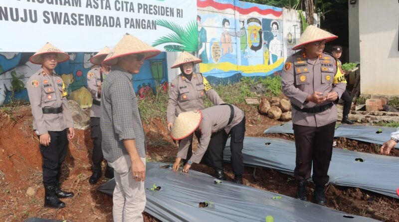 Rangkaian kegiatan dilanjutkan dengan penanaman di lokasi Pekarangan Pangan Bergizi yang terletak di belakang Markas Polres Lampung Selatan.
