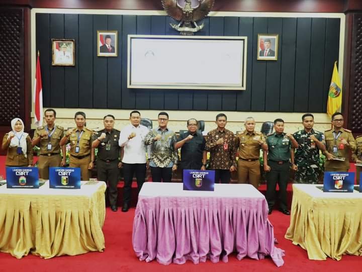 Penjabat (Pj) Gubernur Lampung, Samsudin, Launching Computer Security Incident Response Team (CSIRT) Gabungan 6 Kabupaten di Provinsi Lampung, bertempat di Gedung Pusiban, Kantor Gubernur Lampung, Selasa (03/11/2024).