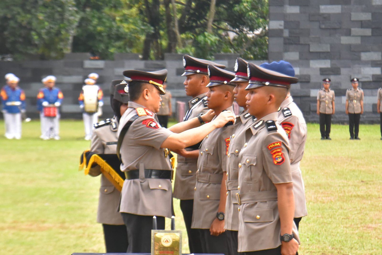 Upacara ini dipimpin langsung oleh Kapolda Lampung, Irjen Pol Helmy Santika, yang sekaligus membacakan amanat Kalemdiklat Polri.