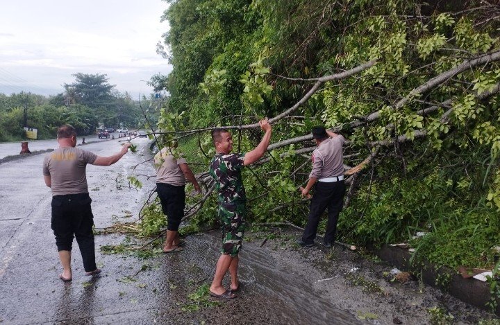 Tim Gabungan TNI Polri Evakuasi Pohon Tumbang di Tanjakan Tarahan