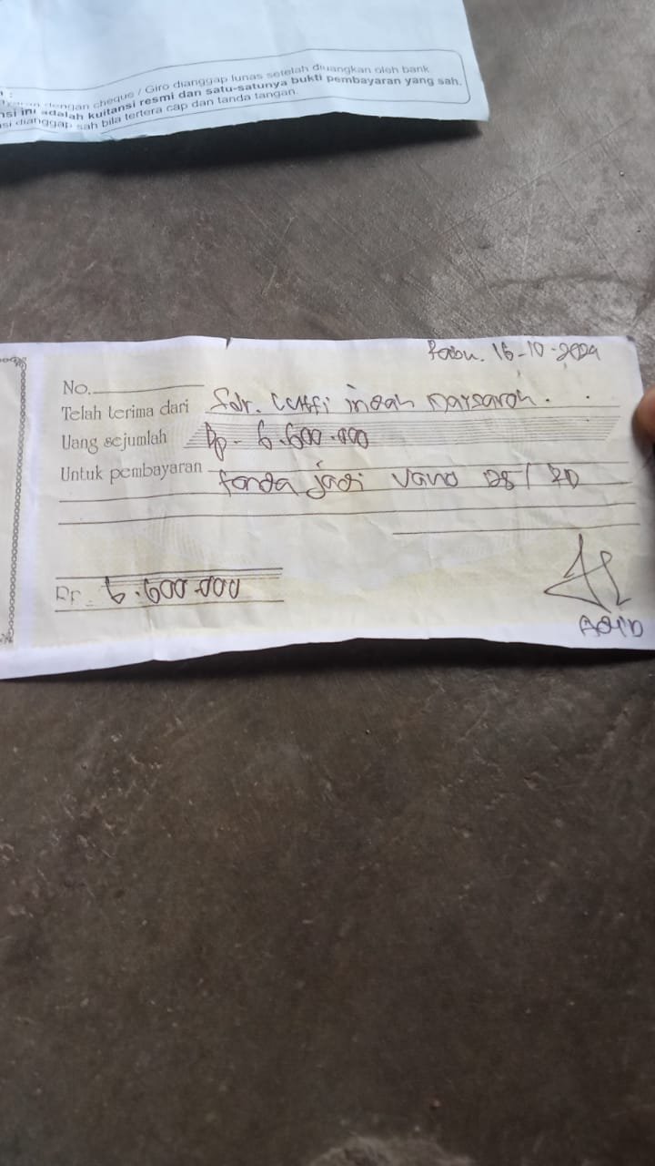 Awas!!!, Oknum Petugas Daeler Pulung Kencana Melakukan Penipuan Kepada Pelanggan