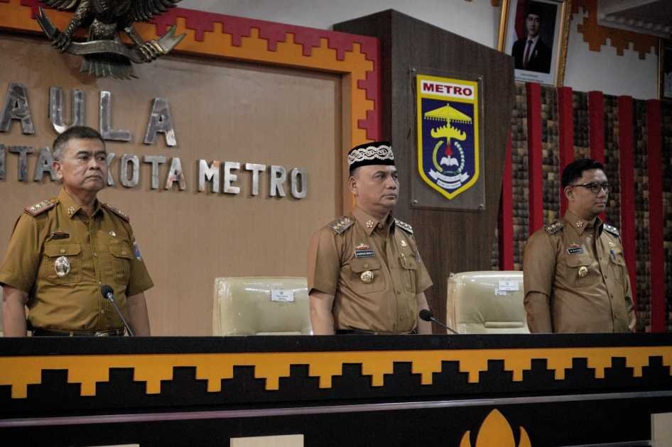 Pemerintah Kota Metro menggelar rapat koordinasi bulanan yang dipimpin oleh Wali Kota, Bambang Iman Santoso dan Wakil Wali Kota, Rafieq Adi Pradana di Aula Pemkot Metro, Selasa (04/03/2025).