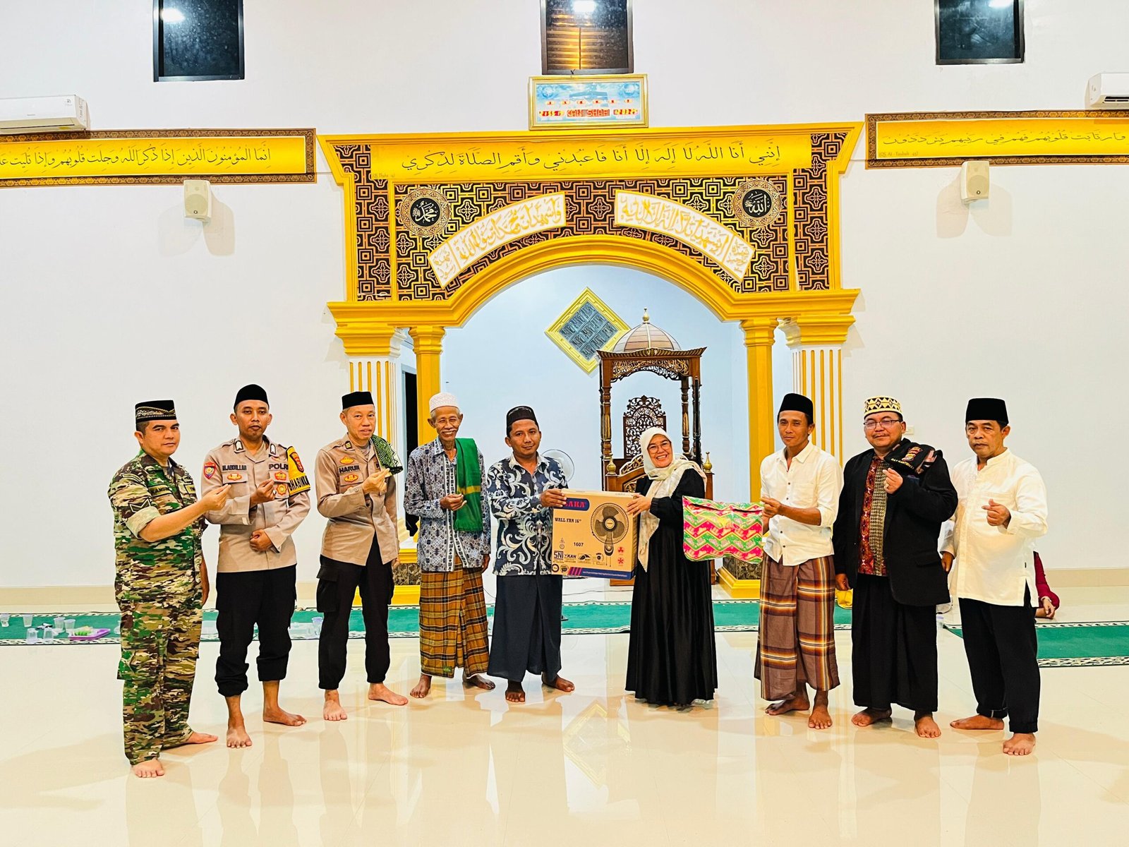 Acara di tutup dengan pembagian bingkisan dan kipas angin dari Camat Penawartama kepada pengurus masjid.