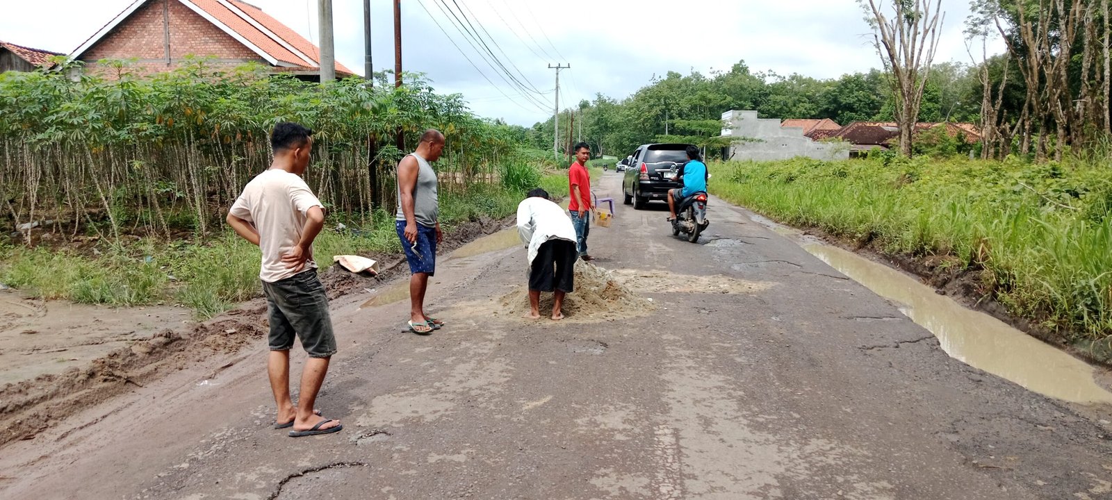 Jadi kami berinisiatif sokongan untuk mengeluarkan uang pribadi kami untuk memperbaiki jalan raya yang rusak agar tidak terjadi hal hal yang tidak di inginkan seperti kecelakaan kendaraan kerena jalan rusak yang berada di tulung senai tiyuh penumangan