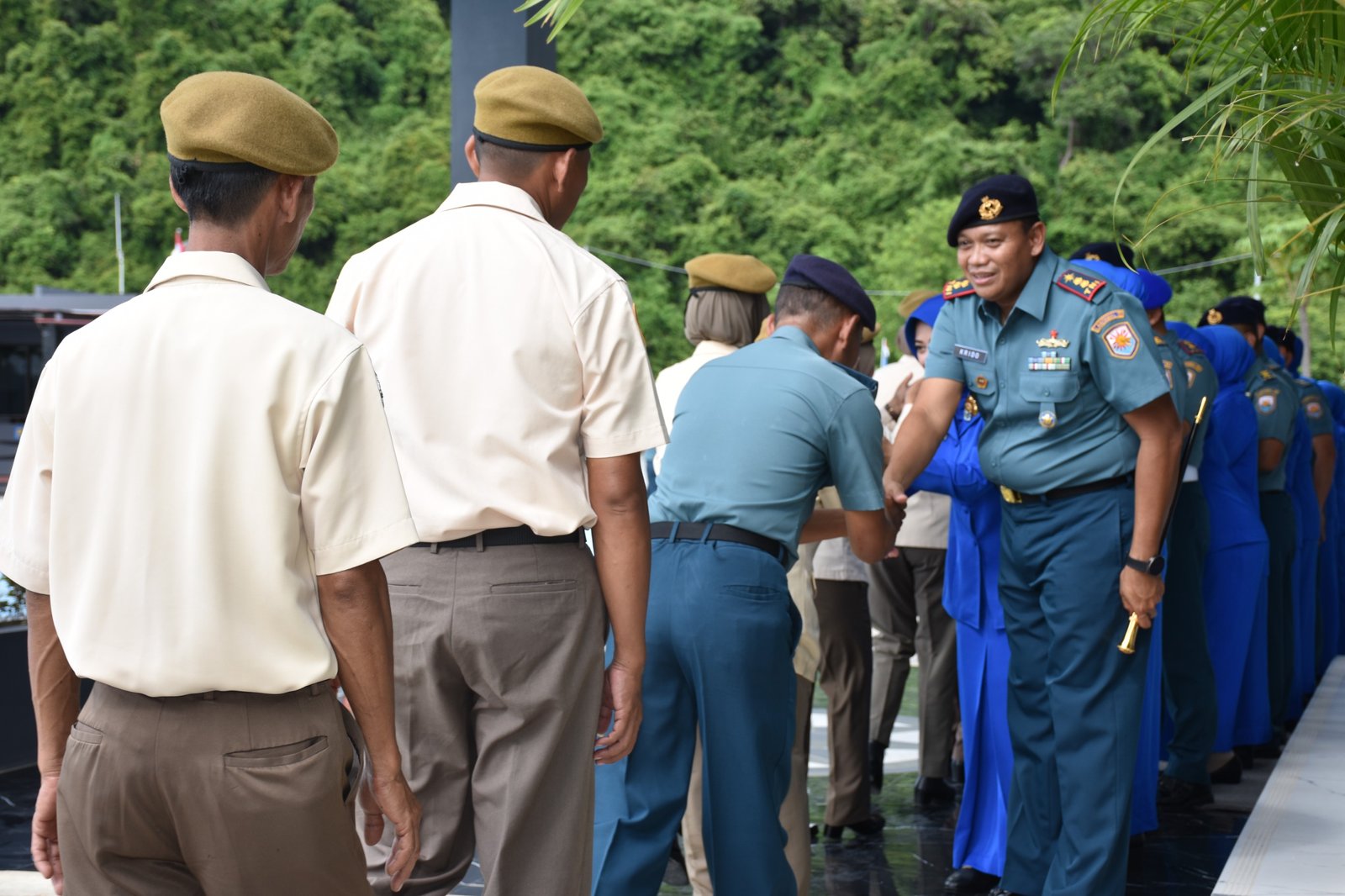 Komandan Pangkalan TNI AL Lampung, Letkol Laut (P) Krido Satriyo U, melaksanakan Apel Khusus dan Halal Bihalal dengan seluruh personel Lanal Lampung dan Ketua Jalasenastri Cabang III Korcab 3 DJA I Ny. Nuke Krido serta Pengurus Jalasenastri Cabang III Korcab 3 DJA I yang bertempat di Lapangan Apel Mako Lanal Lampung Caligi Selasa (8/4/2025).