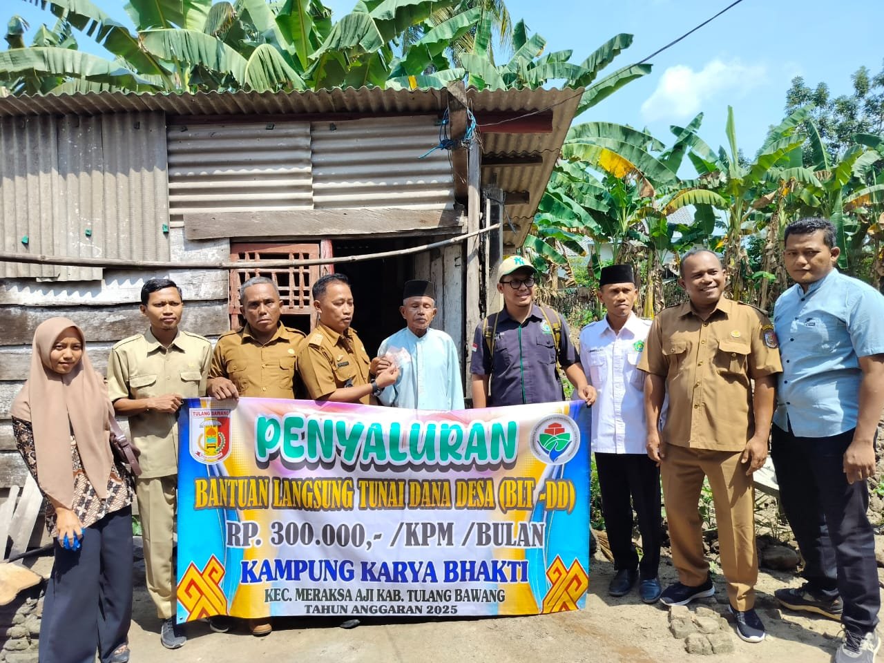 Sebanyak 11 (sebelas) Keluarga Penerima Manfaat (KPM) terima Bantuan Langsung Tunai Dana Desa (BLT-DD) Kampung Karyabhakti, Kecamatan Meraksaaji, Kabupaten Tulangbawang (Tuba) penyaluran BLT-DD tersebut dilaksanakan secara door to door.