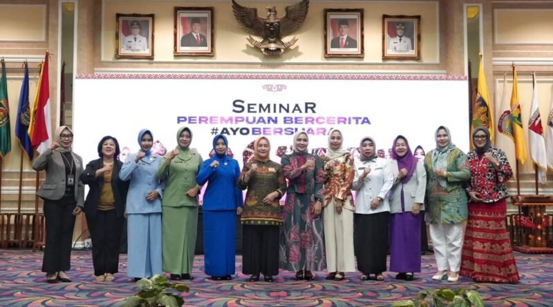 Ketua TP. PKK Provinsi Lampung, Purnama Wulan Sari, membuka secara resmi Seminar Perempuan Bercerita Ayo Bersuara, di Balai Keratun, Rabu (18/06/2025).