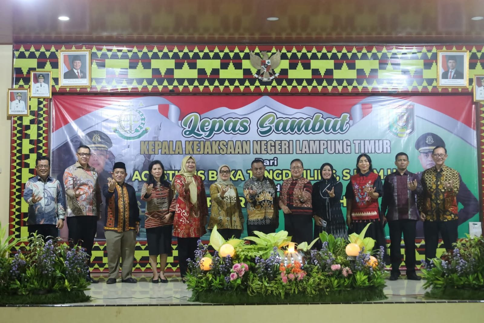 Pemerintah Kabupaten Lampung Timur menggelar acara lepas sambut Kepala Kejaksaan Negeri Lampung Timur, dari Agustinus Baka Tangdililing kepada penggantinya, Pofrizal, Selasa 29 Juli 2025.