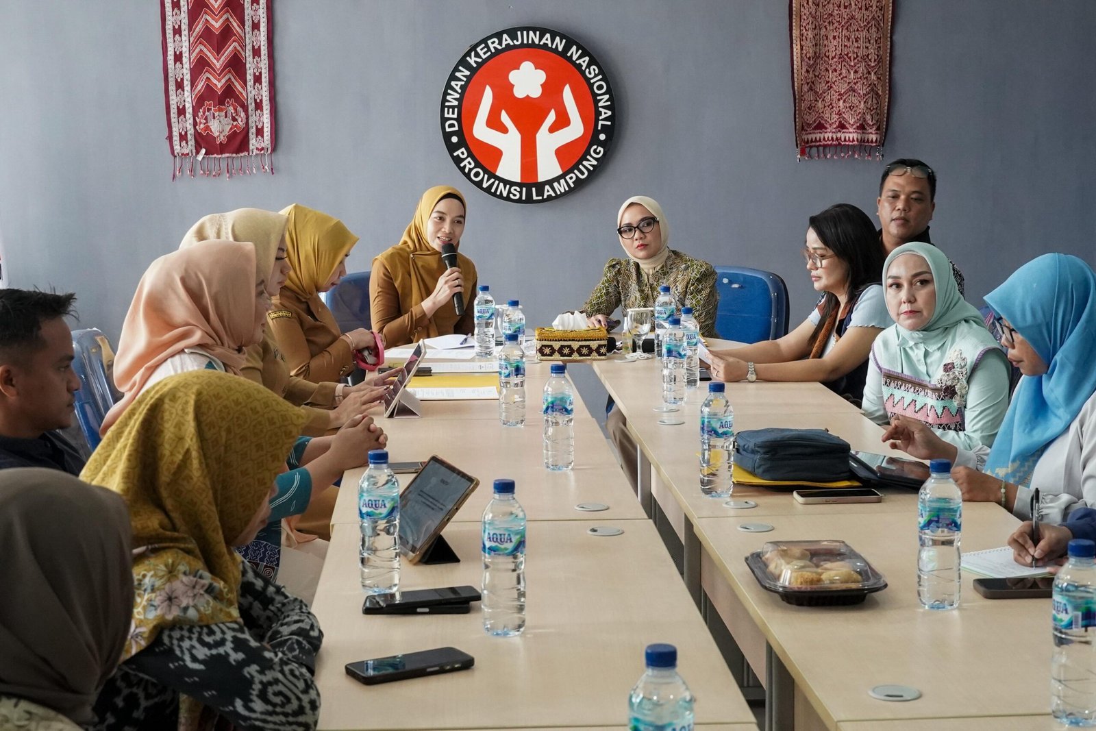Pertemuan ini menjadi ajang diskusi strategis untuk mendorong promosi, inovasi, dan penetrasi pasar kain tapis, warisan budaya khas Lampung yang kian diminati di dalam maupun luar negeri.