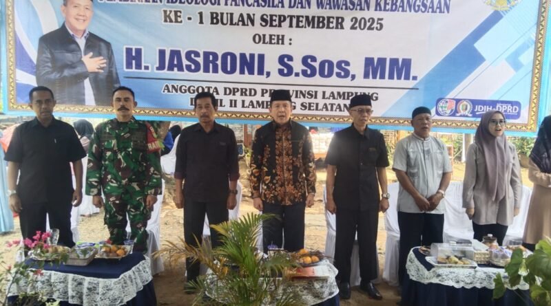 “Pancasila mengajarkan masyarakat Indonesia untuk hidup rukun, gotong royong dan toleransi, baik antar umat beragama, suku, ras dan budaya. Pancasila adalah perekat persatuan dan kesatuan dalam masyarakat,” kata Jasroni pada saat sosialisasi Ideologi Pancasila dan Wawasan Kebangsaan (IPWK) di Desa Jatimulyo, Kecamatan Jati Agung, Lampung Selatan, Minggu (7/9/2025).