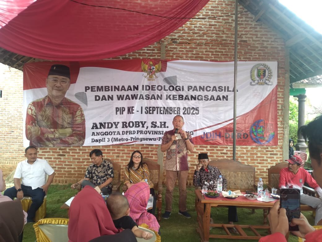 Anggota DPRD Provinsi Lampung ANDY ROBY, S.H, Minggu (07/09/2025) melakukan Pembinaan Idilogi Pancasila dan Wawasan Kebangsaan (IPWK) di Pekon Margosari Kecamatan Pagelaran Utara kabupaten Pringsewu.