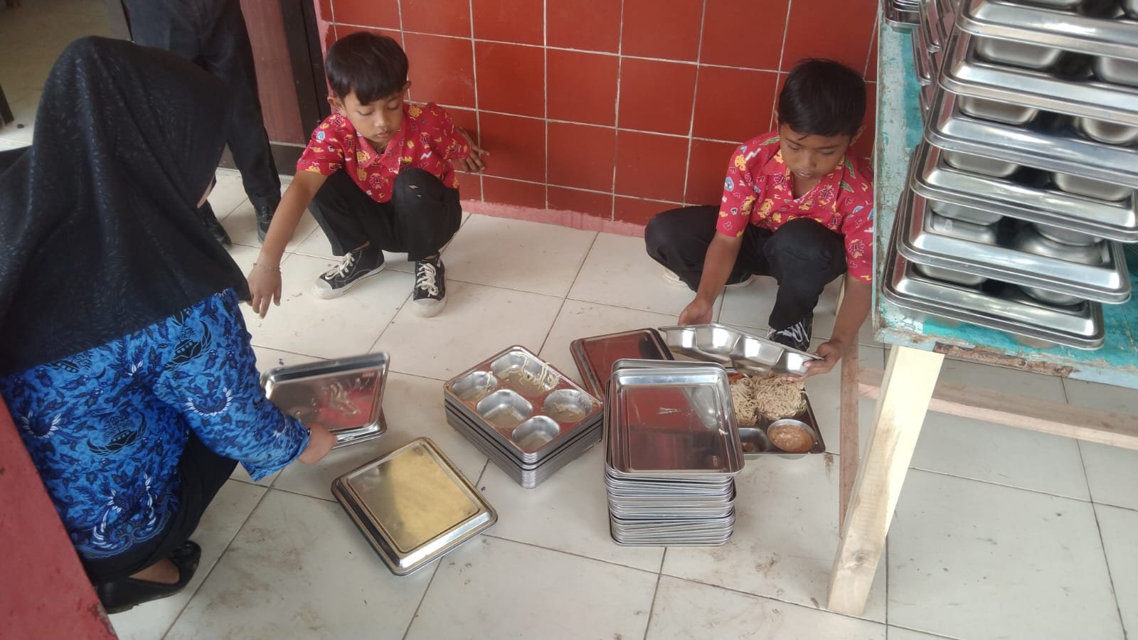 Para siswa penerima program MBG terlihat bengong begitu membuka tutup tempat makanan. Sepertinya mereka kecewa dengan menu yang disajikan.
