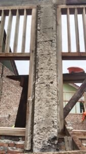 Ucok menceritakan adanya sambungan cor pada tiang yang ditempel dengan adukan semen biasa, lantaran waktu papan cor dibuka adukannya ambrol. “Waktu dibuka papan cor, adukannya ambrol, lalu ditutup dengan menggunakan adukan semen biasa,” akunya. (Mar)