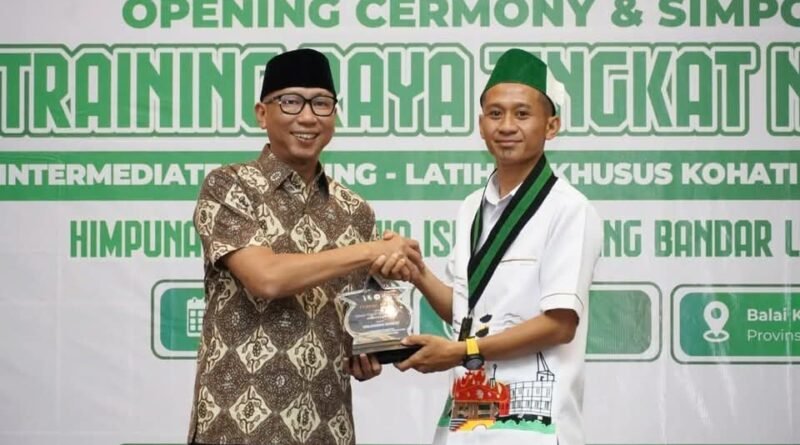 Gubernur Lampung, Rahmat Mirzani Djausal membuka Training Raya Tingkat Nasional Himpunan Mahasiswa Islam (HMI) Cabang Bandar Lampung di Gedung Balai Keratun Lantai 3, Sabtu (25/10/2025).