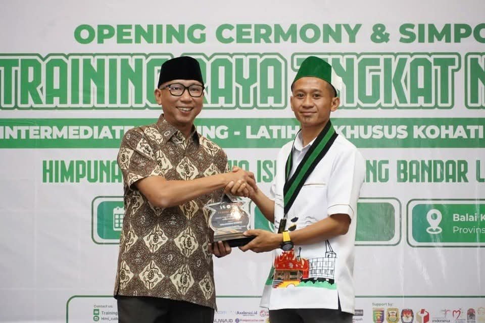Gubernur Lampung, Rahmat Mirzani Djausal membuka Training Raya Tingkat Nasional Himpunan Mahasiswa Islam (HMI) Cabang Bandar Lampung di Gedung Balai Keratun Lantai 3, Sabtu (25/10/2025).