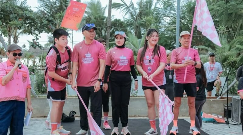 Gubernur Lampung, Rahmat Mirzani Djausal turut berpartisipasi dalam Pinktober Run 2025 sebagai bentuk dukungan terhadap gerakan peduli kanker payudara yang berlangsung di kawasan wisata Kyokko Beach & Resto, Kabupaten Pesawaran, Sabtu (25/10/2025).