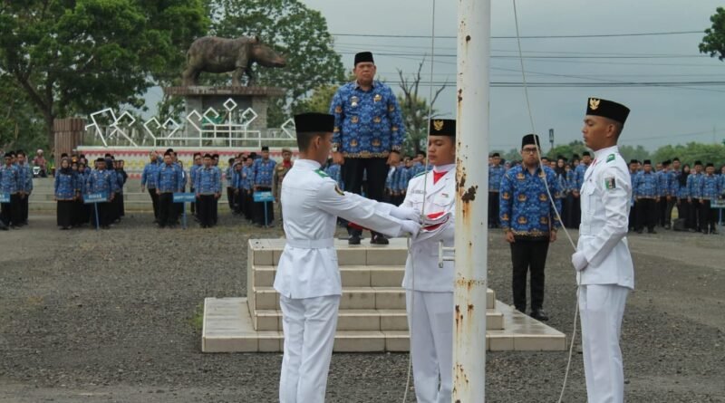 Wakil Bupati Lampung Timur, Azwar Hadi, memimpin upacara peringatan Hari Sumpah Pemuda ke-97 Tahun 2025 yang berlangsung khidmat di halaman Kantor Bupati Lampung Timur, Selasa (28/10/2025).