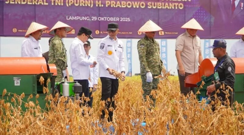 Program panen kedelai unggul di lahan seluas 30 hektare di Kotabumi menjadi proyek percontohan yang menunjukkan keberhasilan kolaborasi antara TNI AL dan Pemerintah Provinsi Lampung.