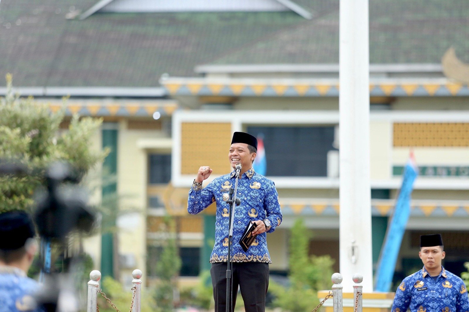 Upacara peringatan Hari Sumpah Pemuda ke-97 tingkat Kabupaten Pringsewu, digelar di lapangan pemkab setempat, Selasa (28/10/2025), dengan pembina upacara Bupati Pringsewu Riyanto Pamungkas.