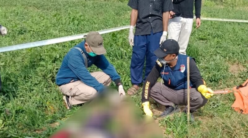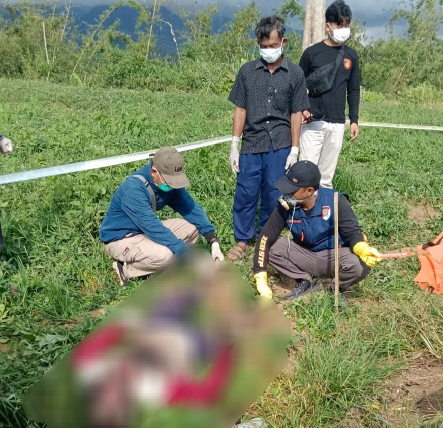 Ketika mendekat, saksi terkejut menemukan tubuh korban sudah dalam kondisi tengkurap dan membusuk di tepi kebun.