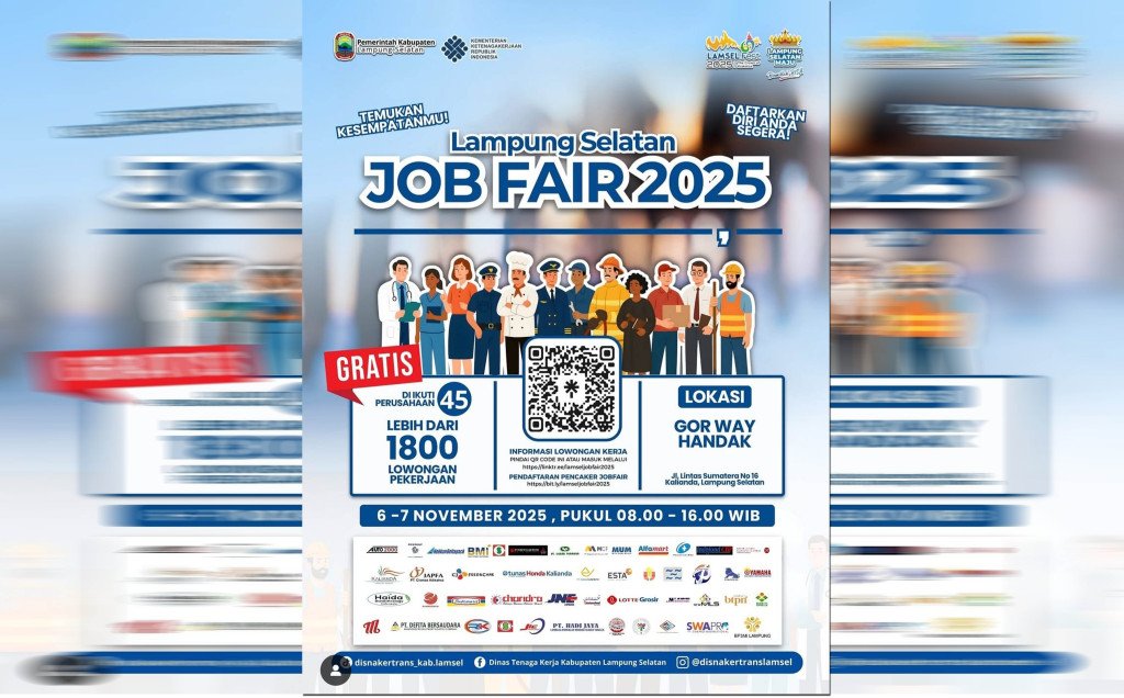 Pemerintah Kabupaten Lampung Selatan kembali membuka peluang besar bagi para pencari kerja melalui ajang Lampung Selatan Job Fair 2025, yang akan digelar pada 6-7 November 2025 di GOR Way Handak, Kalianda.