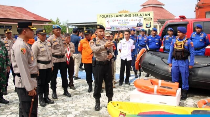 Mengantisipasi meningkatnya risiko bencana akibat puncak musim hujan, Polres Lampung Selatan menggelar Apel Kesiapan Tanggap Darurat Bencana Hidrometeorologi Tahun 2025 di Lapangan Polres setempat, Senin (5/11/2025).