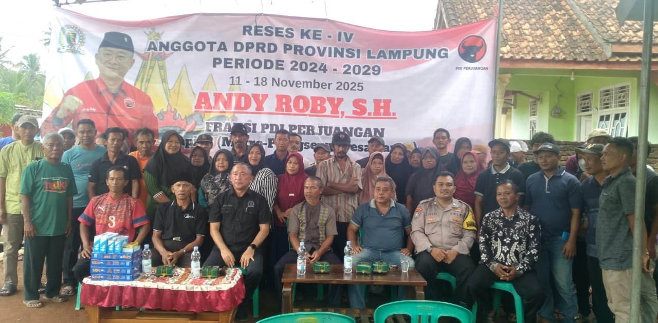 Anggota DPRD Provinsi Lampung dari Partai PDIP Andy Roby, SH Kamis, 13,November 2025 Reses di tiga kecamatan yang ada di Kabupaten Pringsewu, Ketiga titik kunjungan hari itu ada di Pekon Giri Tunggal Kecamatan Pagelaran Utara. Kemudian di Pekon Banyumas Kecamatan Banyumas, dan yang terahir di Pekon Sinar Baru Kecamatan Sukoharjo.
