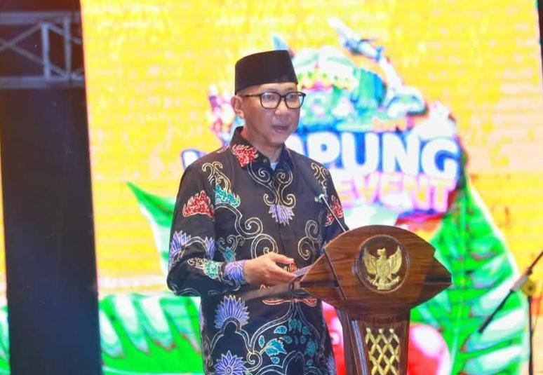 Gubernur Rahmat Mirzani Djausal didampingi Wakil Gubernur Jihan Nurlela dan jajaran Forkopimda Provinsi Lampung membuka Lampung Fest 2025, di PKOR Way Halim, Rabu 12 Nopember 2025.