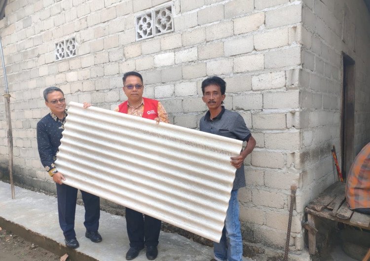 Palang Merah Indonesia (PMI) Lampung Timur melalui PMI Ranting Way Jepara menyalurkan bantuan berupa 5 kodi (100 lembar) asbes kepada warga terdampak bencana angin puting beliung di Desa Braja Asri, Kecamatan Way Jepara.