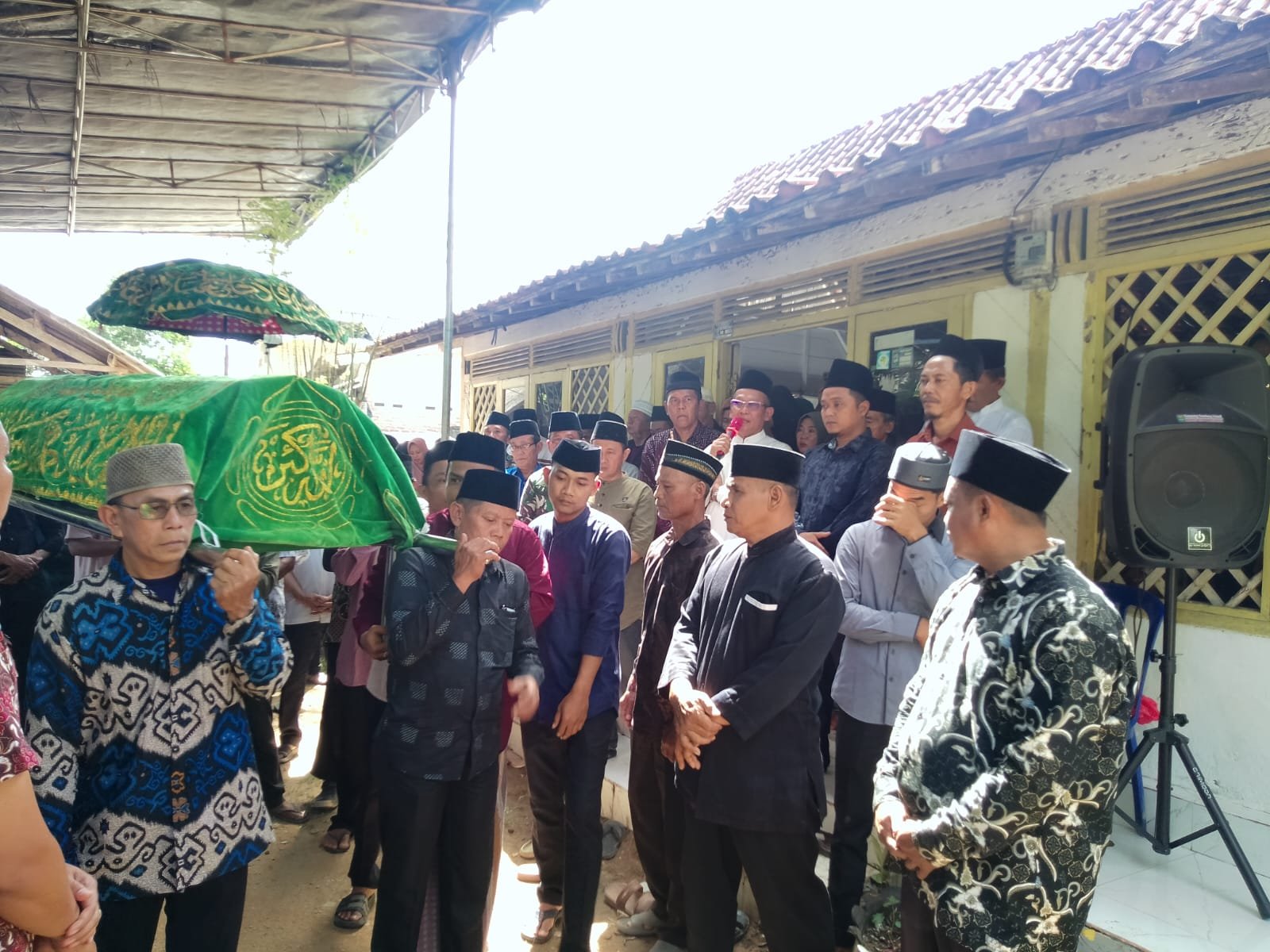 Sambil meneteskan air mata Prof Mukri sebelum jenazah di berangkat ke tempat pemakaman umum/ TPU setempat sebagai wakil dari keluarga menyampaikan ucapan banyak terima kasih kepada semua para takjiah yang tidak bisa di sebutkan satu persatu.