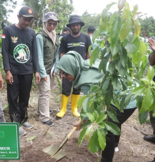Dalam kesempatan tersebut, Bupati Ela Siti Nuryamah juga melakukan penanaman pohon alpukat varietas unggulan lokal “Siger Ratu Buah” sebagai simbol komitmen pelestarian lingkungan sekaligus dukungan terhadap pengembangan tanaman produktif yang bernilai ekonomi.