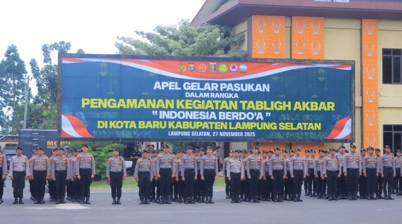 Polda Lampung menggelar Apel Gelar Pasukan dalam rangka kesiapan pengamanan Tabligh Akbar “Indonesia Berdoa 2025” yang akan berlangsung di Kota Baru, Lampung Selatan, pada 28–30 November 2025. Kamis(27/11/25)