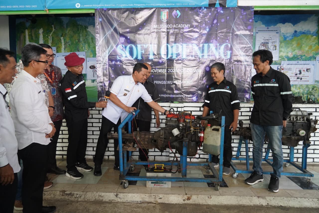 Pemerintah Kabupaten Pringsewu terus memperluas upaya peningkatan kualitas sumber daya manusia. Hal ini ditegaskan saat Bupati Pringsewu, H. Riyanto Pamungkas, meresmikan Soft Opening LPK Muji Sinergi Indonesia (Mujisindo) Academy di Pringsewu Barat, Kecamatan Pringsewu, Rabu (26/11/2025).
