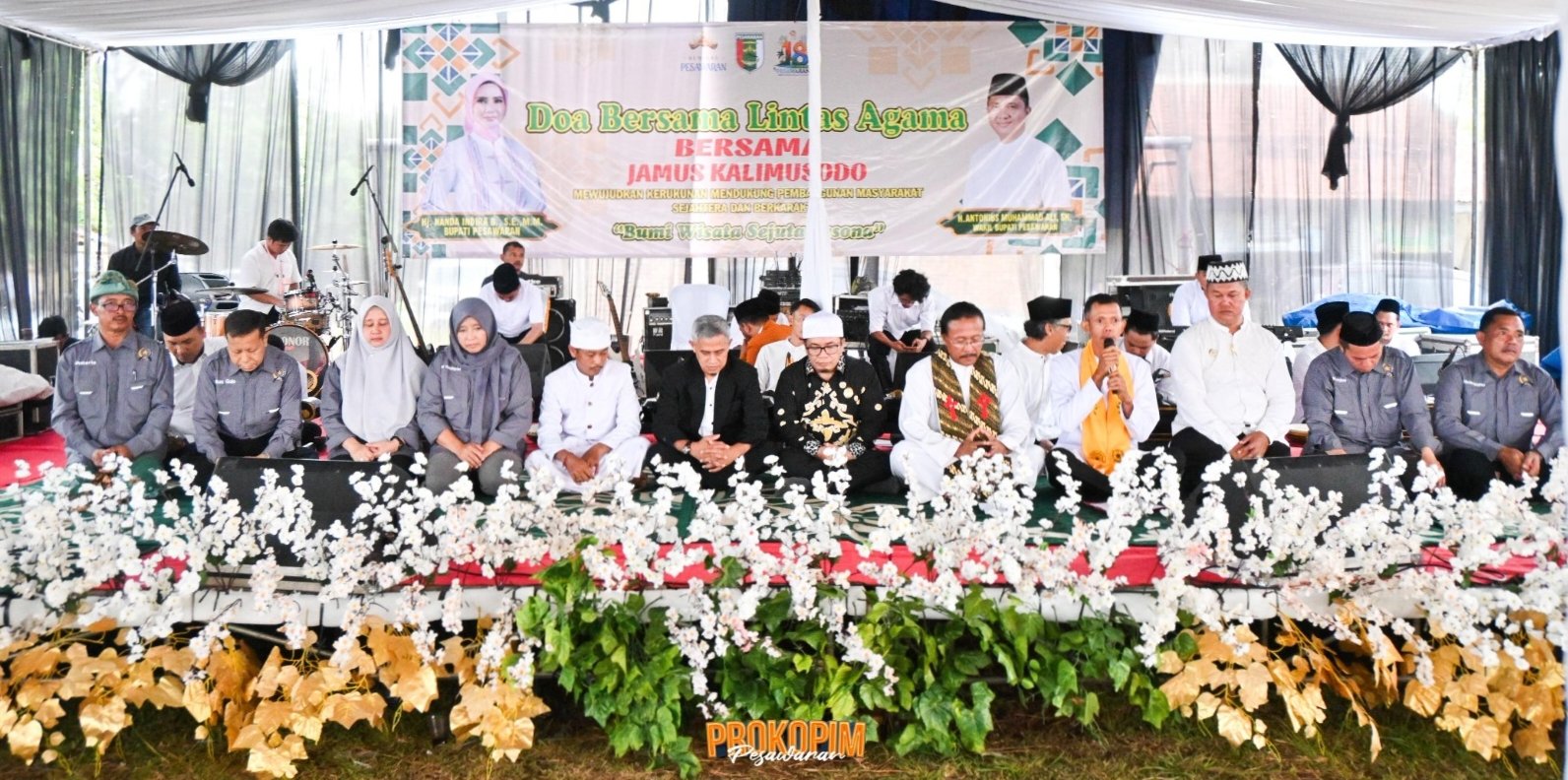 Pemerintah Kabupaten Pesawaran menggelar Doa Bersama Lintas Agama Tahun 2025 yang diselenggarakan di Lapangan Desa Roworejo, Kecamatan Negeri Katon, Jumat (5/12/2025). Kegiatan ini dipandu oleh Jamus Kalimosodo dan menghadirkan berbagai tokoh lintas agama serta masyarakat Kabupaten Pesawaran.