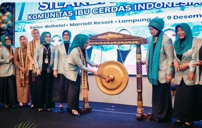 Ketua TP. PKK Provinsi Lampung sekaligus Dewan Pengawas DPW Komunitas Ibu Cerdas Indonesia (KICI) Provinsi Lampung, Purnama Wulan Sari Mirza, membuka kegiatan Silaturahmi Akbar Nasional (SILAKBARNAS) KICI ke-IX yang berlangsung di Ballroom Swiss-Belhotel Lampung, Senin (08/12/2025).