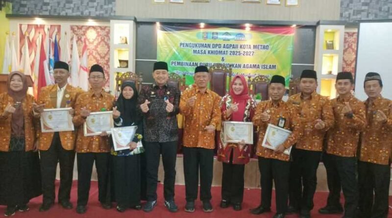 Walikota Metro melalui Asisten Pemerintahan dan Kesra, Rosita, menghadiri pengukuhan Ketua Asosiasi Dewan Pengurus Daerah Guru Pendidikan Agama Islam Indonesia (DPD AGPAII) Kota Metro periode 2025–2027 yang berlangsung di SMA Negeri 1 Metro, Kamis (11/12/2025).