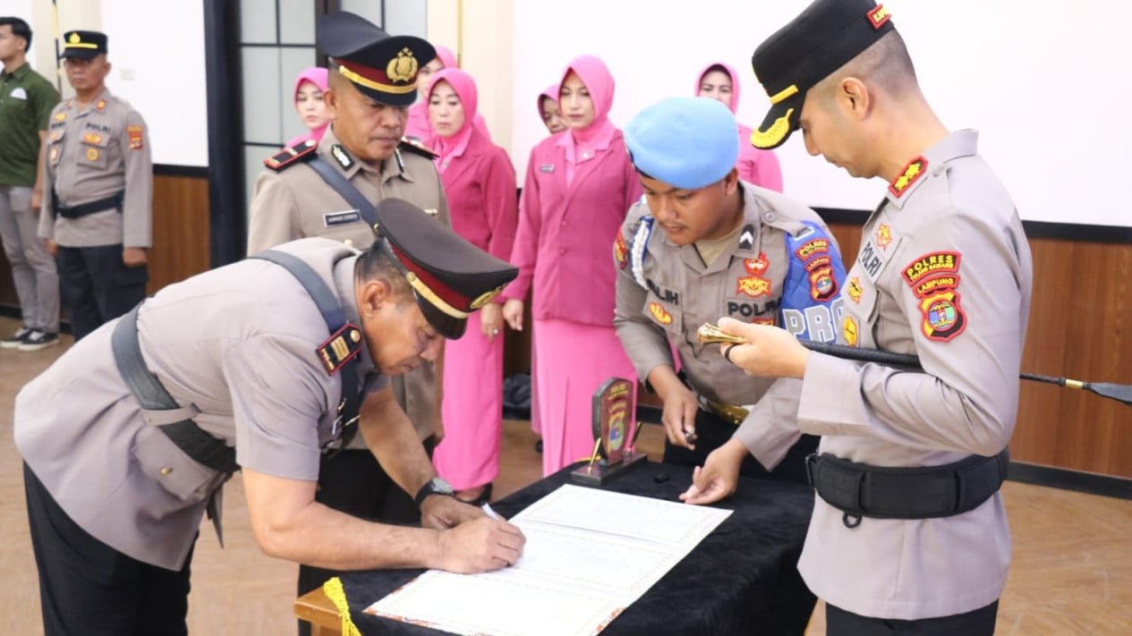 Kapolres Tulang Bawang, AKBP Yuliansyah, memimpin upacara Serah Terima Jabatan (Sertijab) Kepala Seksi Pengawasan (Kasi Was) Polres Tulang Bawang. Kegiatan ini berlangsung di Aula Polres Tulang Bawang pada Selasa (16/12/2025), dihadiri oleh para Pejabat Utama (PJU) dan seluruh Kapolsek jajaran.