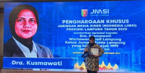 Ketua Jurnalis Polda Lampung Mak koesumawati Terima Penghargaan Awards 2025 Dari JMSI Lampung