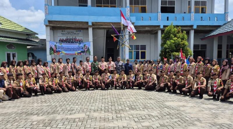 Komandan Pangkalan TNI AL (Danlanal) Lampung Kolonel Laut (P) Krido Satrio U, S.E., M.Tr.Hanla, yang diwakili oleh Pgs. Paster Lanal Lampung Kapten Laut (P) Purwo Edi Santoso, memimpin Upacara Pembukaan Perkemahan Sakabahari dengan tema “Perkemahan Membakar Semangat Api Bela Negara” yang diselenggarakan di Lapangan SMP PGRI 2 Katibung Tarahan Lampung Selatan, Selasa (23/12/2025).
